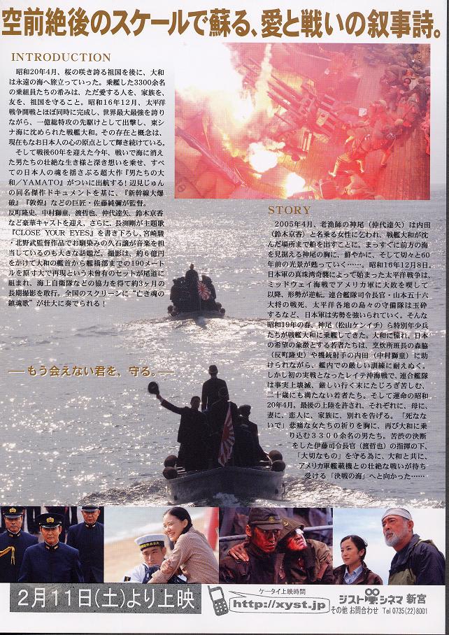 この企画に伴い、現在のジストシネマ新宮の「男たちの大和」の上映時間が18日(土)より1日4回