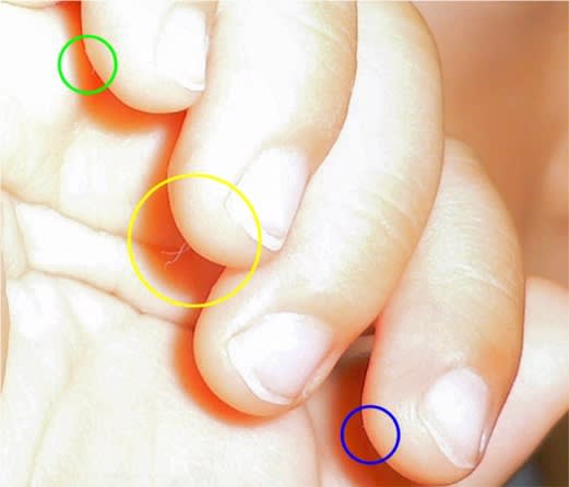 写真 疳の虫 特によくわかるのは、○ の薬指(第4指)の先の2本です。