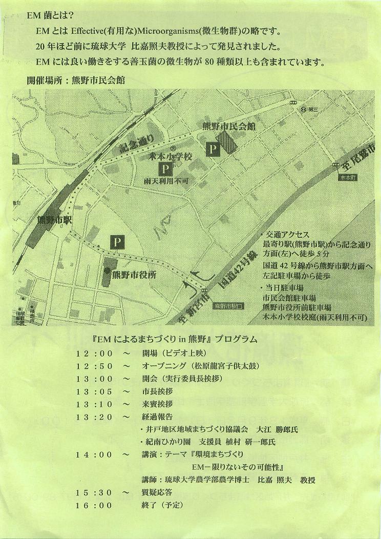 比嘉先生講演会のお知らせ セラピスト&ダウザーのひとり言 X Facebook はてブ LINE Pinterest コピー 2006.09.01 皆様、9月3日日曜日に熊野市民会館でEMをおよそ20年前に発見されましたEMの産みの親の琉球大学の比嘉照夫教授の講演会があります。当院にて大好評のネックレスもこの技術の応用品です。パンフレット入手しました。皆様、ごらんになって下さい。そして、よろしかったら出かけてみて見て下さい。