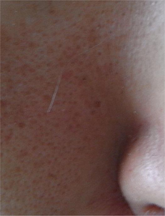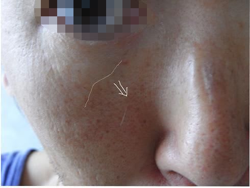 場所は、顔の右側の鼻筋の近くから伸びてきました。