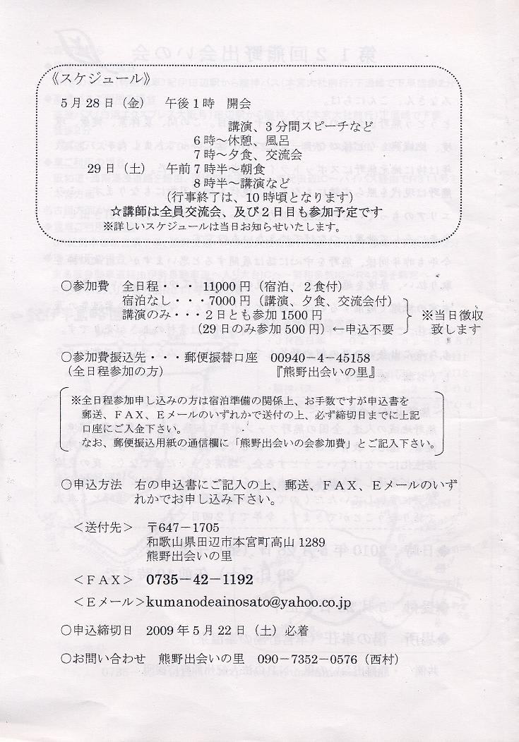 今日は、熊野で開かれるイベントのお知らせです。弘祥が、過去に参加して記事にした、熊野出会いの会のお知らせです。今年で12回目だそうです。主催は、熊野出会いの里の里長の麻野吉男氏です。