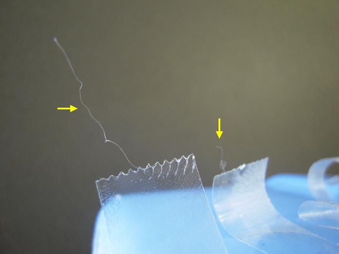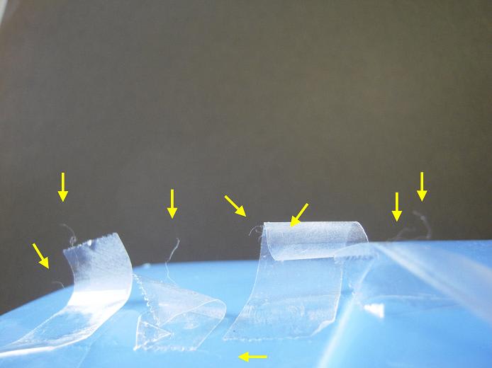 下の写真ですが疳の虫は、 出た後きっちりセロテープでくっつけて丁寧に取ります。取り終わったセロテープは、丸めてゴミ箱に捨てます。 青い部分は倒したセロテープ台の側面です。